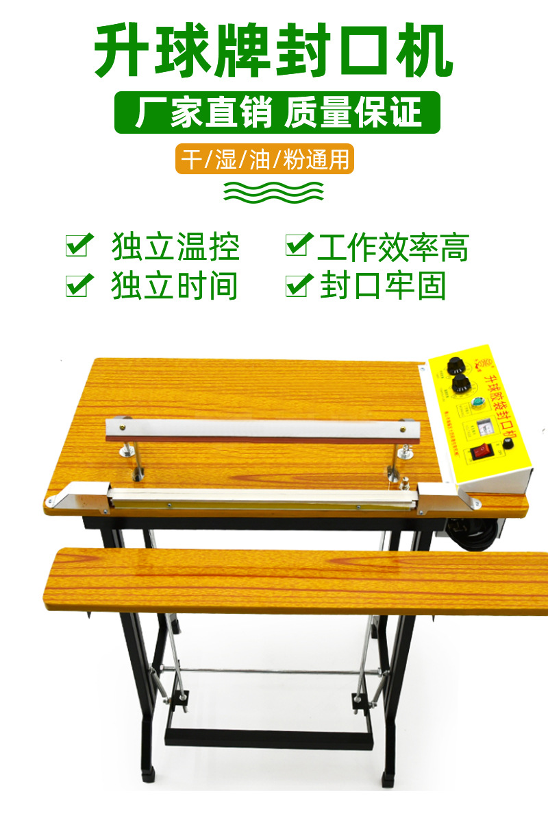 腳踏封口機使用方便,操作人員雙手可以自由地操作包裝材料,這對于形狀不規(guī)則、大小不同的物品包裝尤為方便