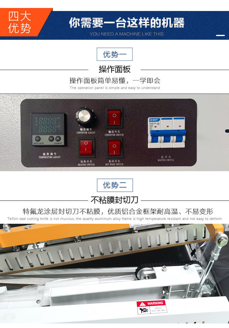 溫度控制精度:在封切過程中,溫度控制是關(guān)鍵。該機器的加熱系統(tǒng)能夠精確控制溫度,精度一般在 ±5℃左右。這樣可以根據(jù)不同的包裝薄膜材質(zhì)和厚度,準(zhǔn)確地將薄膜加熱到合適的溫度,確保薄膜處于熔融狀態(tài),以實現(xiàn)良好的封口效果。例如,對于 POF(聚烯烴熱收縮膜)薄膜,加熱溫度通常在 130 - 180℃之間;對于 PVC(聚氯乙烯)薄膜,加熱溫度一般在 100 - 150℃之間。精確的溫度控制有助于避免薄膜過熱導(dǎo)致封口質(zhì)量差(如封口處薄膜熔化過度、出現(xiàn)焦痕等)或溫度不足導(dǎo)致封口不牢固的情況。