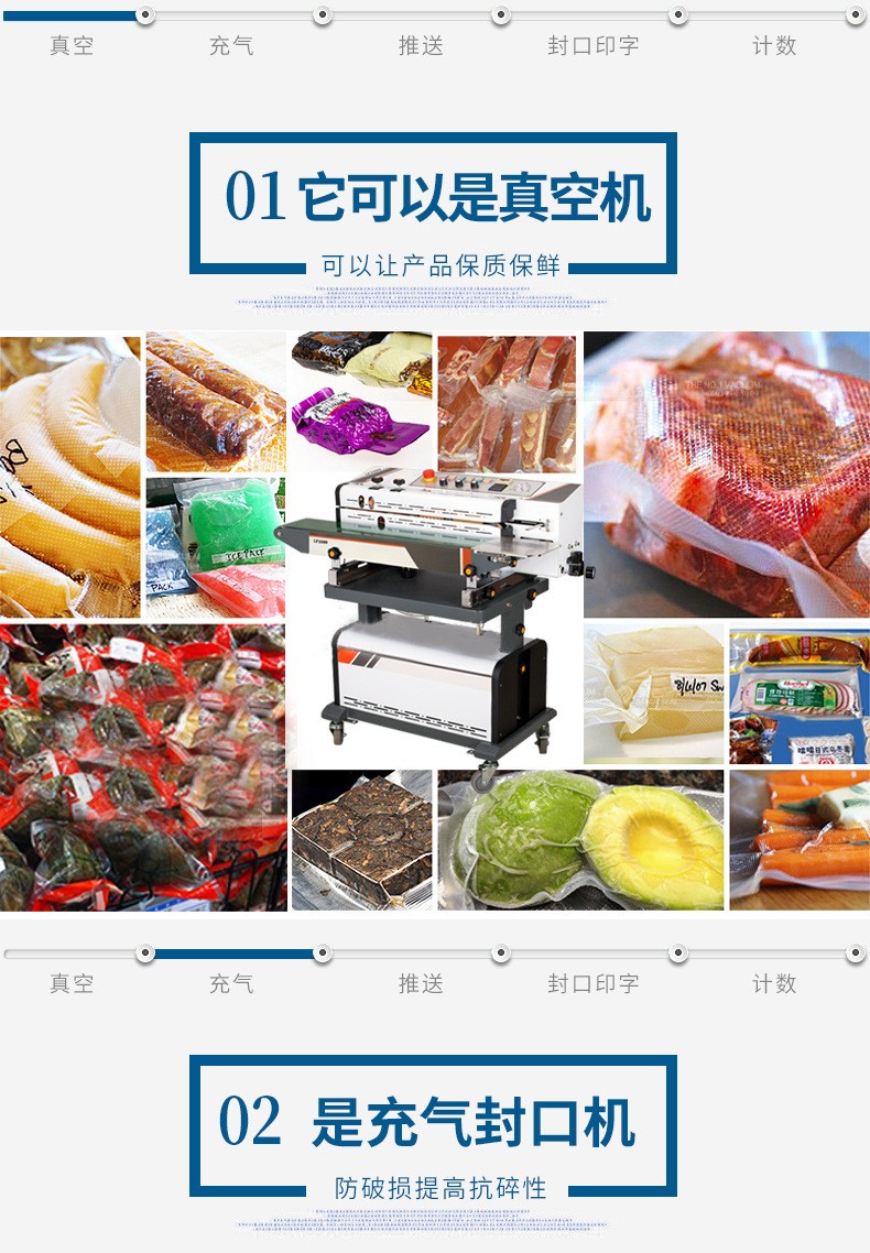 連續(xù)式真空包裝機連續(xù)輸送系統(tǒng)能夠實現(xiàn)產品的連續(xù)穩(wěn)定輸送,確保包裝過程不間斷,大大提高了包裝效率,適用于大規(guī)模生產的需求.