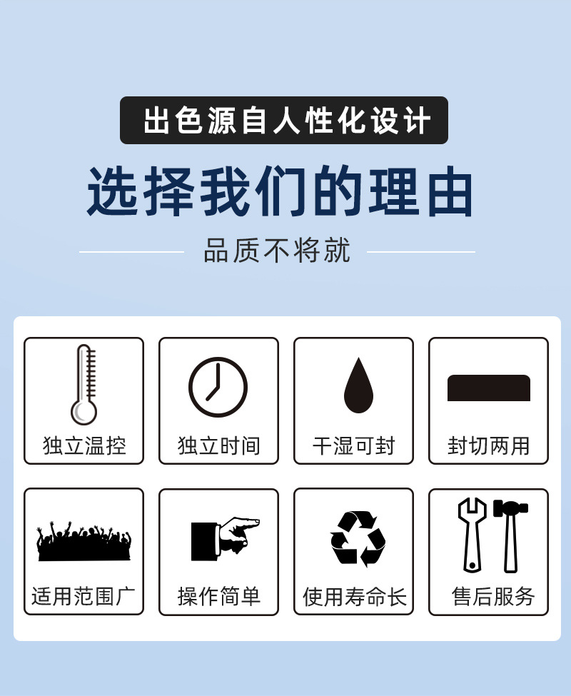 - 適用性強(qiáng):可以處理多種不同厚度和材質(zhì)的包裝材料,只要調(diào)整好溫度和壓力等參數(shù),就能對(duì)塑料薄膜、復(fù)合膜等材料進(jìn)行有效封口。