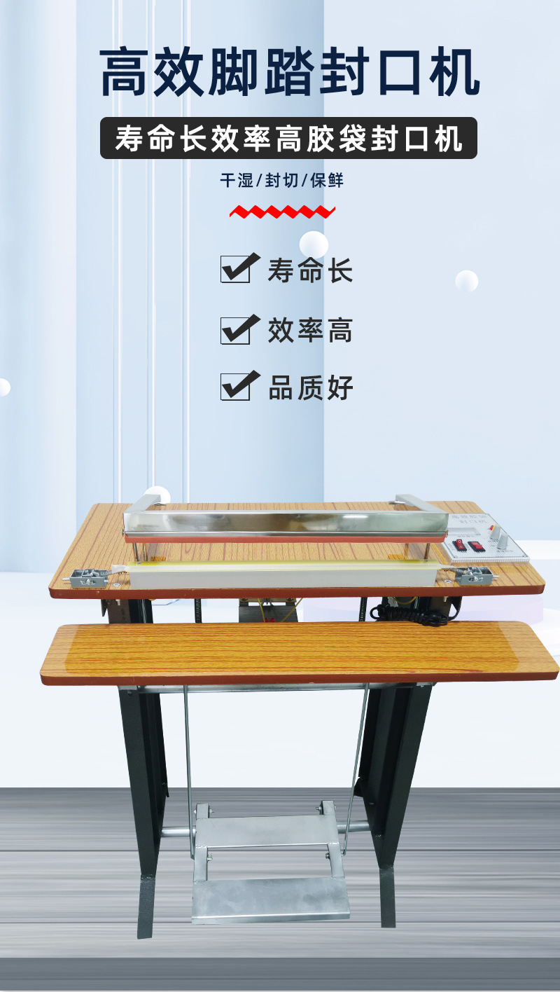 腳踏封口機(jī)適用性強(qiáng),可以處理多種不同厚度和材質(zhì)的包裝材料
