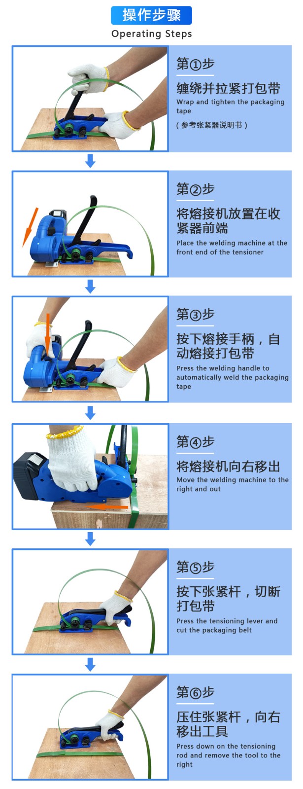 手持電動(dòng)打包機(jī)體積小、重量輕,這使得它能夠方便地在不同的工作場(chǎng)所之間移動(dòng)