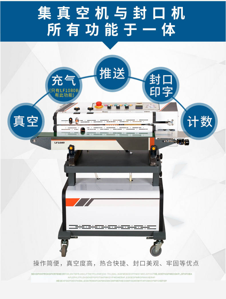連續(xù)式抽真空包裝機(jī)是一種高效的包裝設(shè)備,能不間斷地對(duì)產(chǎn)品進(jìn)行真空包裝,大幅提升包裝效率,以下為你詳細(xì)介紹: