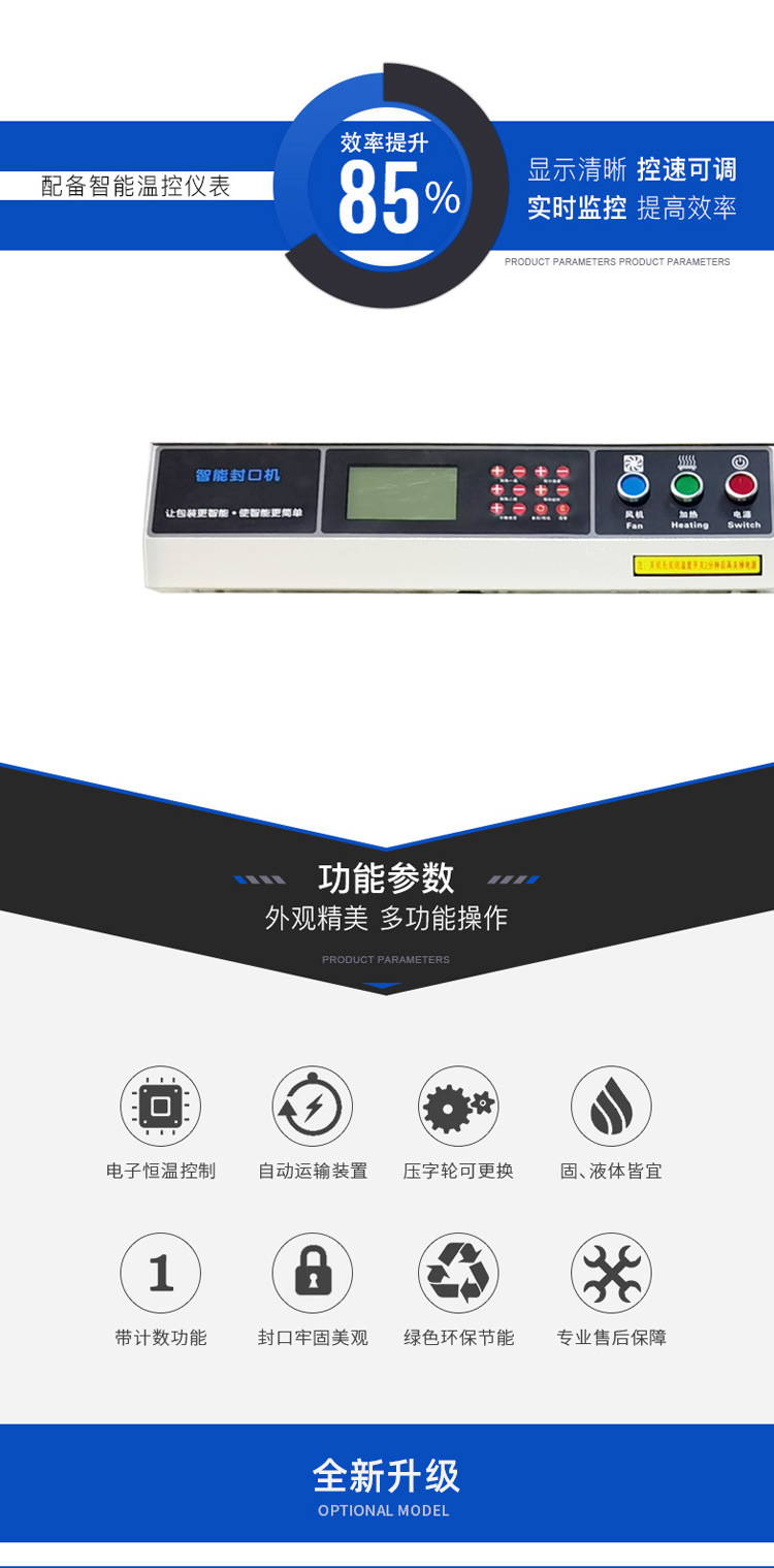 - 封口速度:通常在 5 - 30m/min 之間調(diào)節(jié),快速的封口速度直接提升生產(chǎn)線的包裝效率,企業(yè)依據(jù)產(chǎn)量規(guī)劃靈活設定。