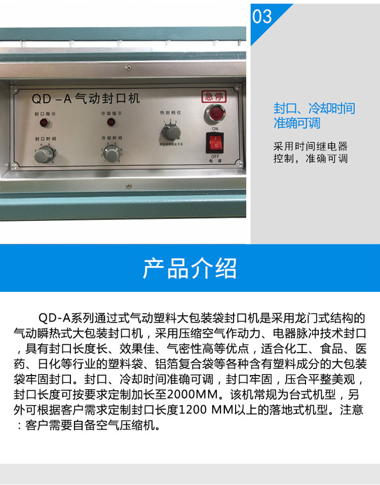 相反,當(dāng)面對(duì)較厚的包裝材料,像是多層復(fù)合膜或較厚的塑料材質(zhì)時(shí),較低的氣壓無法讓封口模具有效壓緊材料,會(huì)導(dǎo)致封口不牢。這種情況下,需要提高氣壓,使氣缸推動(dòng)封口模具產(chǎn)生足夠的下壓力,確保包裝材料的各個(gè)層面緊密貼合。同時(shí),適當(dāng)延長封口時(shí)間,給予加熱元件充足時(shí)間將熱量傳遞至材料內(nèi)部,使內(nèi)層材料也能充分熱熔,進(jìn)而形成牢固且密封良好的封口。