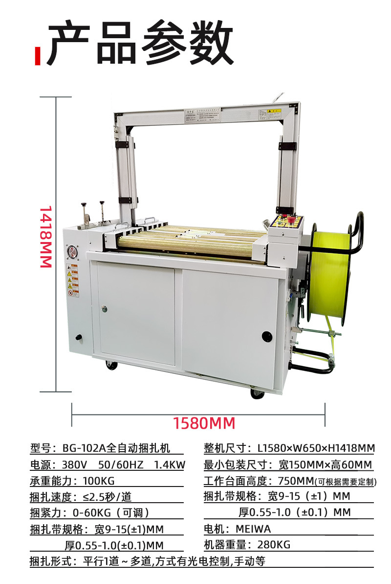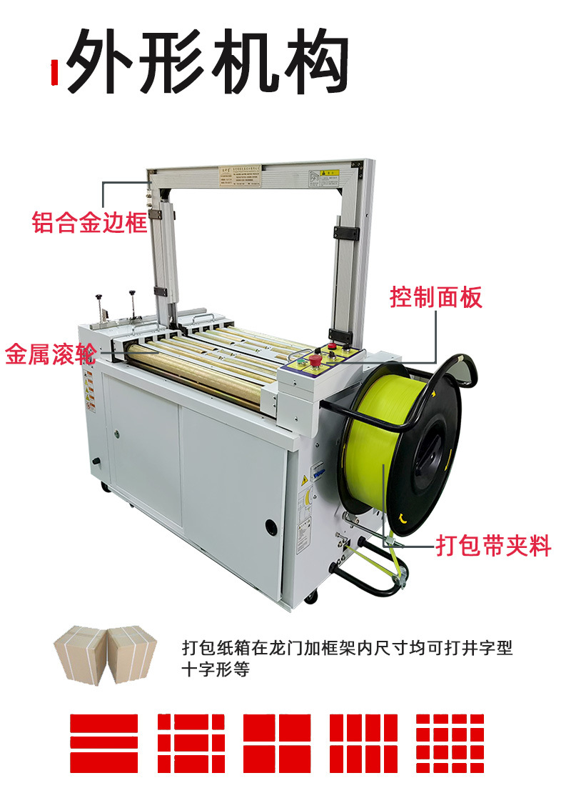 - 金屬包裝:像金屬罐、金屬盒等金屬材質(zhì)的包裝物品也可以使用自動打包機進行打包。不過,由于金屬包裝較重,需要選擇拉力較大的打包帶和相應(yīng)的自動打包機型號,以保證打包的穩(wěn)定性和安全性。