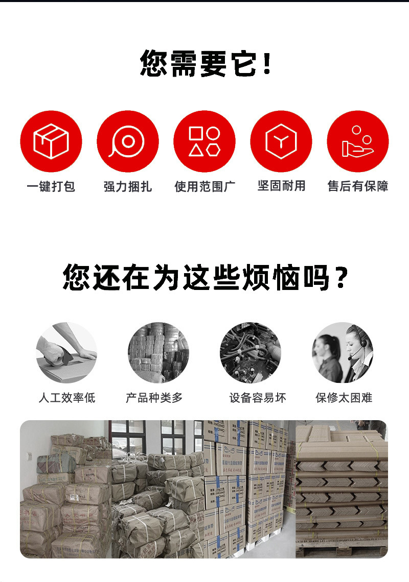 - 紙質(zhì)包裝:如紙箱、紙盒、紙質(zhì)文件等,是自動打包機最常見的打包對象。自動打包機可以根據(jù)紙質(zhì)包裝的大小和重量,選擇合適的打包帶和打包方式,確保打包牢固,防止紙箱在搬運過程中散開。