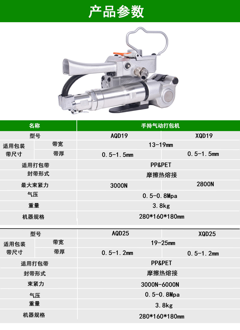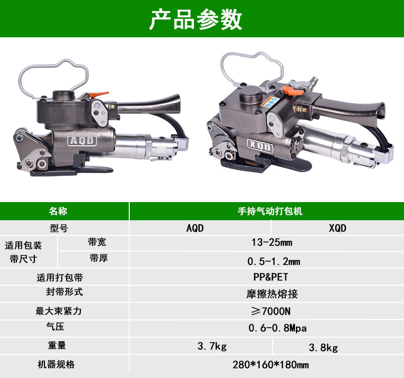 - 打包帶選擇:根據(jù)被包裝物的重量、尺寸及運輸要求,選擇合適規(guī)格的打包帶。一般來說,氣動打包機適用于寬度為 9 - 19mm、厚度為 0.5 - 1.2mm 的打包帶。同時,要確保打包帶的質(zhì)量良好,無破損、變形等缺陷,以免影響打包效果或造成設(shè)備故障。