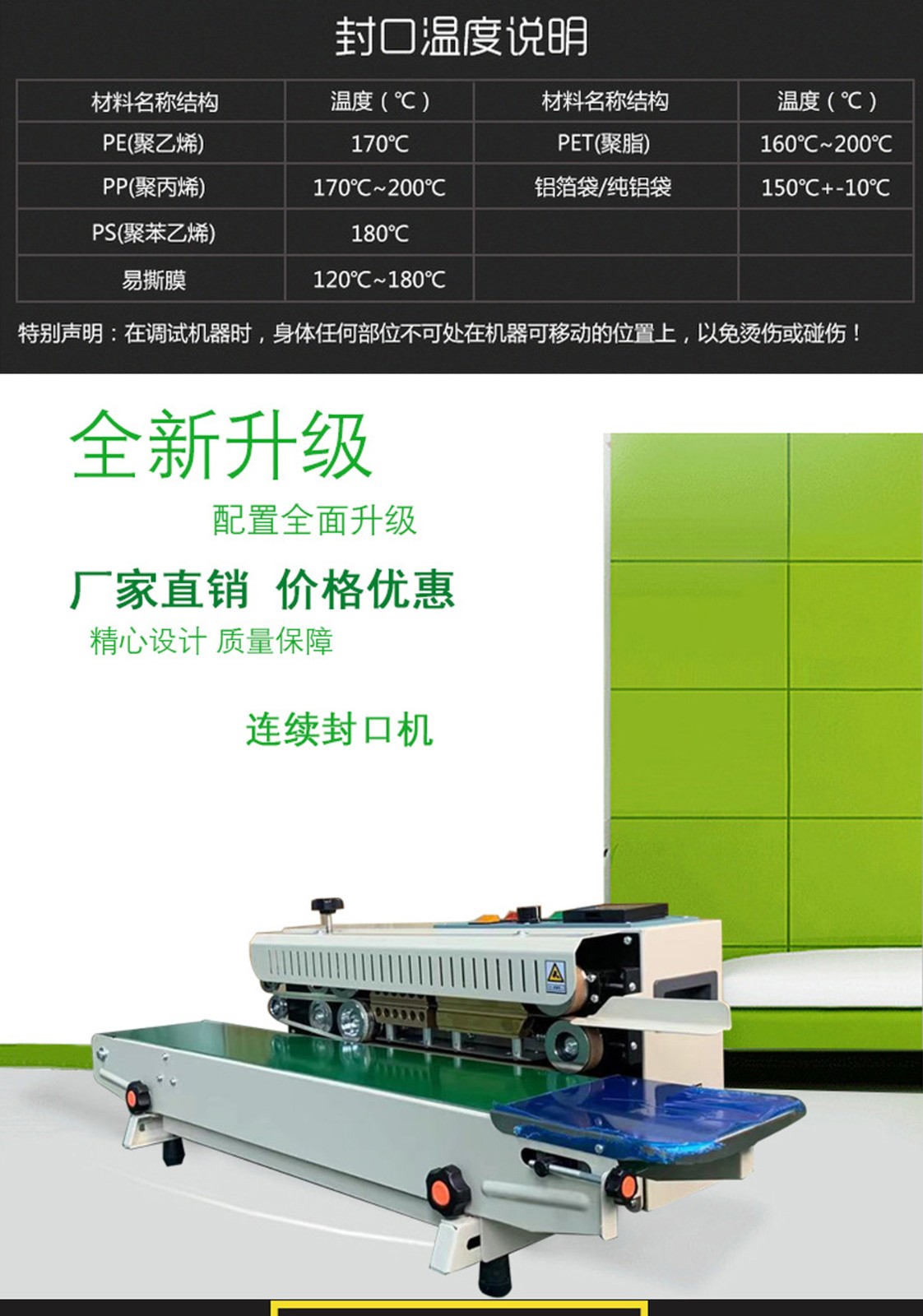 可定制化:部分連續(xù)封口機(jī)可以根據(jù)用戶的不同需求進(jìn)行定制,如調(diào)整封口寬度、長(zhǎng)度、印字內(nèi)容等,以滿足各種特殊的包裝要求。