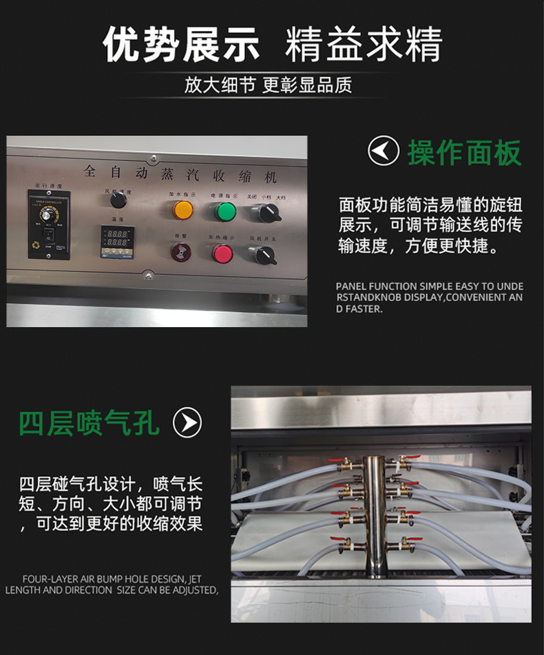 • 高效封裝:利用蒸汽的熱傳導(dǎo)性快速軟化膜材,收縮時(shí)間較傳統(tǒng)電加熱縮短 30%~50%;