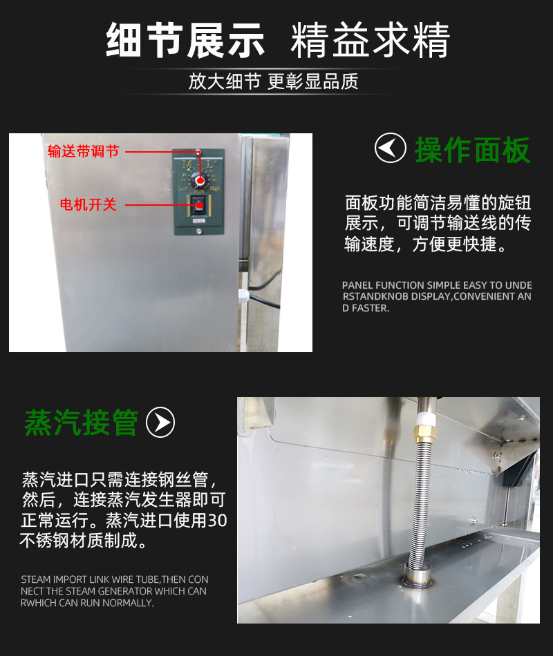 其工作原理是利用蒸汽的高溫和熱能,對(duì)覆蓋在產(chǎn)品外的收縮膜進(jìn)行加熱。當(dāng)收縮膜受熱達(dá)到一定溫度時(shí),其分子結(jié)構(gòu)發(fā)生變化,從而產(chǎn)生收縮現(xiàn)象,緊緊包裹住產(chǎn)品。