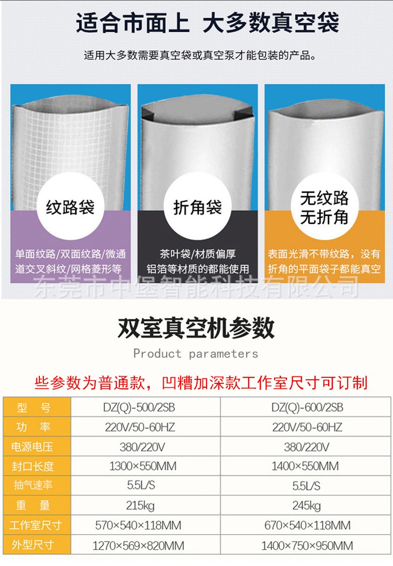 雙室凹槽真空包裝機(jī)具備以下優(yōu)點(diǎn):
