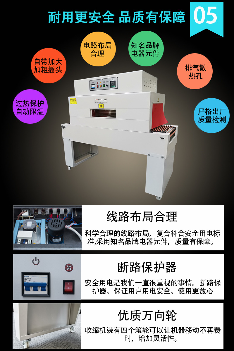 - 加熱系統(tǒng):包括加熱元件、溫度控制器等,負(fù)責(zé)產(chǎn)生熱量并控制加熱溫度,確保收縮膜能夠在合適的溫度下進(jìn)行收縮。