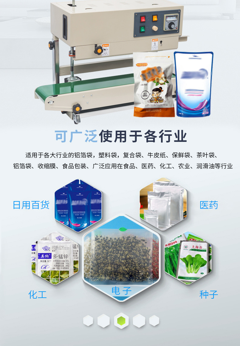 - 適用范圍廣:可以適用于各種不同材質(zhì)的包裝材料,如塑料薄膜、復(fù)合薄膜、鋁箔等。同時(shí),也能適應(yīng)不同形狀和尺寸的物品封口需求。