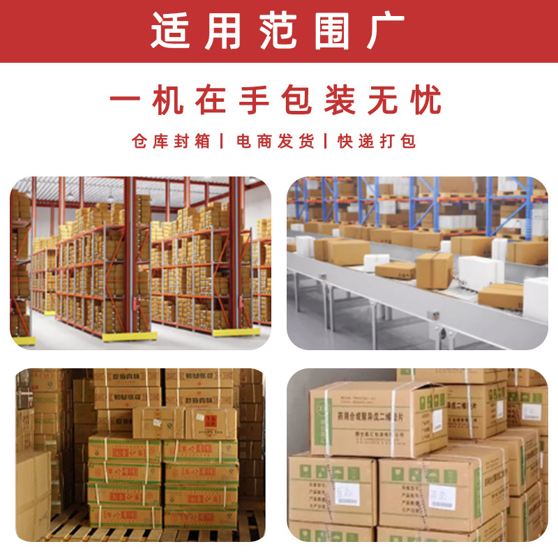 - 在倉儲過程中,用于對入庫的貨物進行封箱打包,一方面保護貨物免受灰塵、濕氣等的影響,另一方面便于倉庫的管理和貨物的盤點。例如,將各類貨物封裝在紙箱內(nèi)并打包好,不僅可以防止灰塵、濕氣等進入,還可以使貨物在倉庫中擺放得更加整齊,便于管理和盤點。