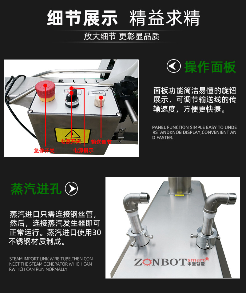 - 封切好的產(chǎn)品隨后被輸送到熱收縮區(qū)域。熱收縮區(qū)域一般通過熱風(fēng)、蒸汽或紅外線等方式提供熱量。如果是熱風(fēng)方式,熱風(fēng)機(jī)產(chǎn)生的高溫空氣在收縮通道內(nèi)循環(huán),使薄膜受熱收縮;若是蒸汽方式,蒸汽包圍產(chǎn)品促使薄膜收縮;紅外線方式則是利用紅外線輻射讓薄膜分子運(yùn)動(dòng)加劇而收縮。在熱收縮過程中,薄膜在熱量的作用下逐漸收縮,緊密地包裹住產(chǎn)品,最后經(jīng)過冷卻通道定型。