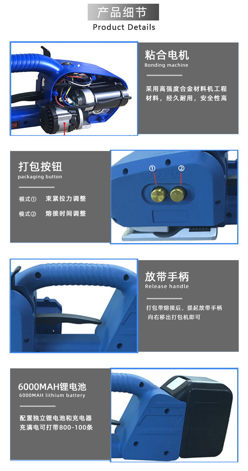 - 體積小巧:手持打包機(jī)的設(shè)計(jì)初衷就是方便攜帶和使用。它的體積通常較小,能夠輕松地拿在手中或者放在工具包中。與傳統(tǒng)的大型打包設(shè)備相比,其外形尺寸更適合在空間有限的環(huán)境下操作,例如在貨車車廂內(nèi)狹窄的過道、超市貨架之間或者倉庫的角落里進(jìn)行打包作業(yè)。