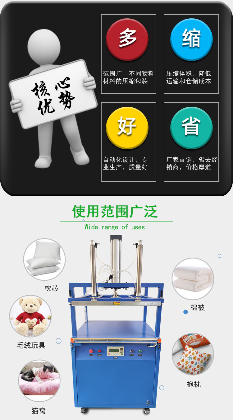 - 壓力校準(zhǔn):定期使用專業(yè)壓力測試工具,檢測壓縮時實際輸出的壓力值,對比設(shè)定值進行調(diào)整,防止壓力過大損傷產(chǎn)品,或壓力不足導(dǎo)致壓縮不到位,影響包裝效果。
