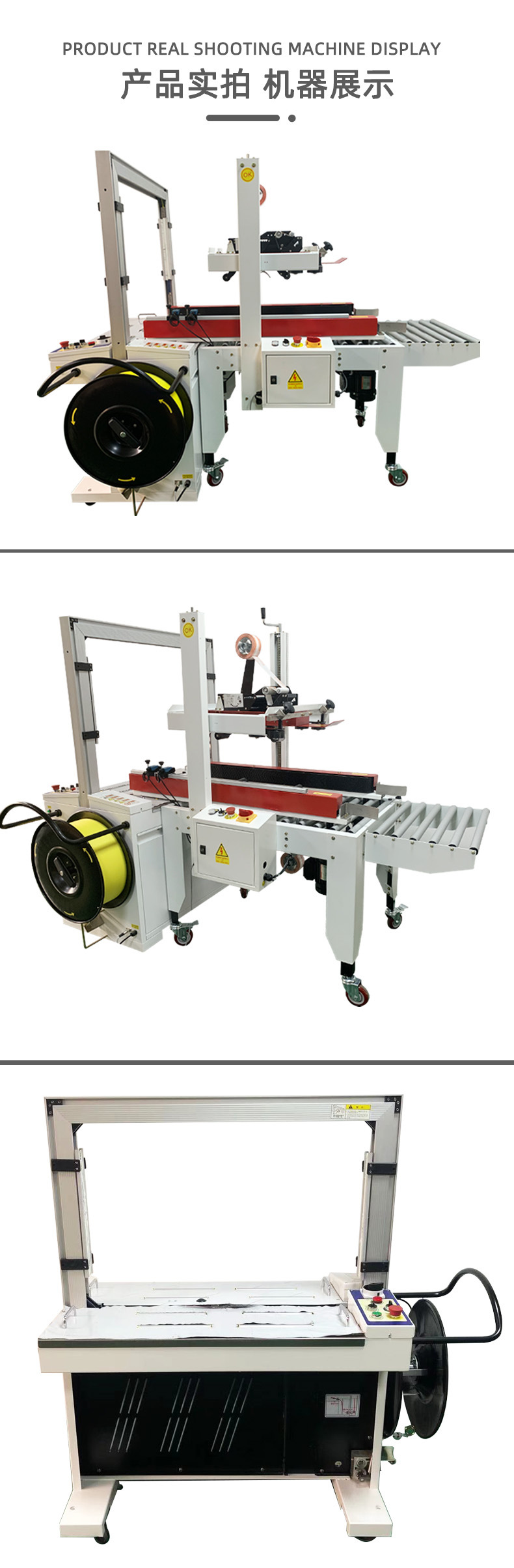 - 一體機的各個工作環(huán)節(jié)都由統(tǒng)一的控制系統(tǒng)精確控制,能夠確保每一個包裝產(chǎn)品的封箱和打包質量都是相同的。例如,膠帶粘貼的位置和長度、打包帶的收緊程度等都能保持穩(wěn)定,減少了因為人工操作差異而導致的包裝質量參差不齊的情況。這對于需要高質量包裝的產(chǎn)品,如電子產(chǎn)品、精密儀器等尤為重要。