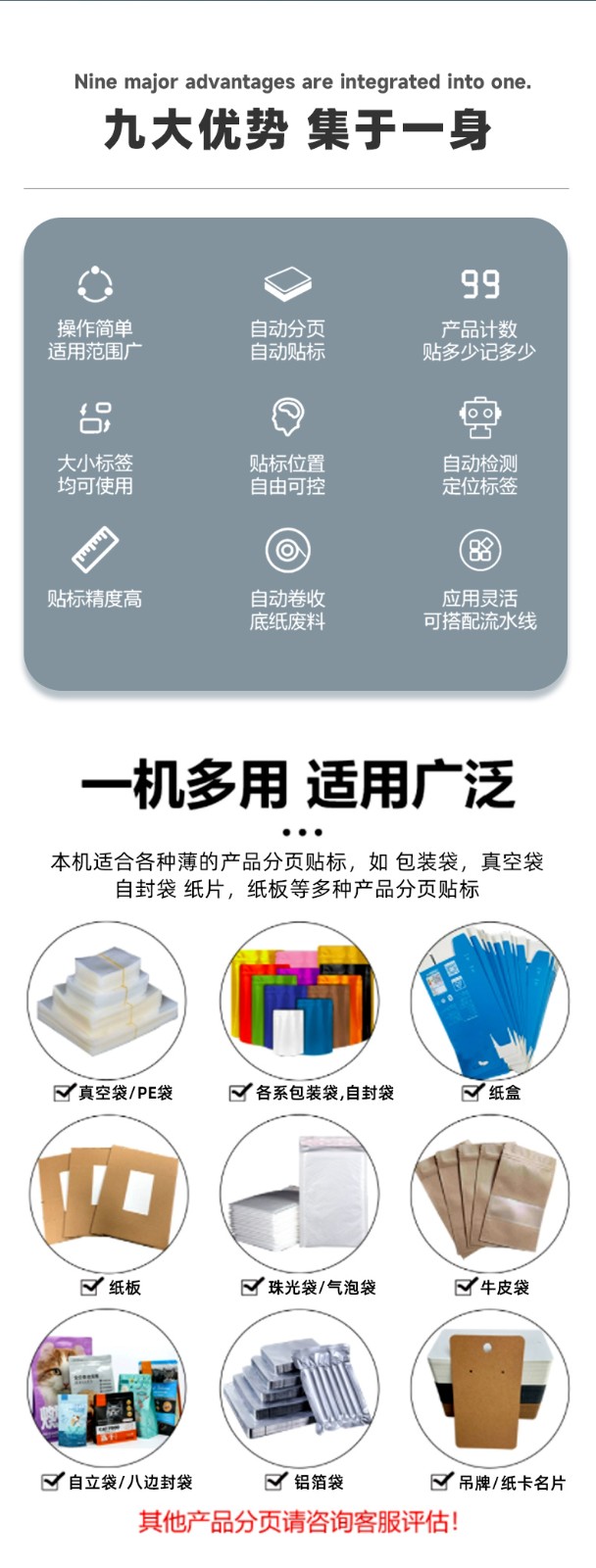 - 分頁(yè)原理:分頁(yè)機(jī)構(gòu)中的分紙輪在電機(jī)驅(qū)動(dòng)下轉(zhuǎn)動(dòng),其表面與標(biāo)簽疊接觸,利用摩擦力將最上面的一張標(biāo)簽分離出來(lái)。同時(shí),吸嘴在真空系統(tǒng)的作用下產(chǎn)生吸力,當(dāng)分紙輪分離出標(biāo)簽后,吸嘴迅速吸附住標(biāo)簽,防止其在輸送過(guò)程中偏移或掉落。擋紙裝置則確保標(biāo)簽疊保持整齊,使分頁(yè)過(guò)程穩(wěn)定、準(zhǔn)確。
