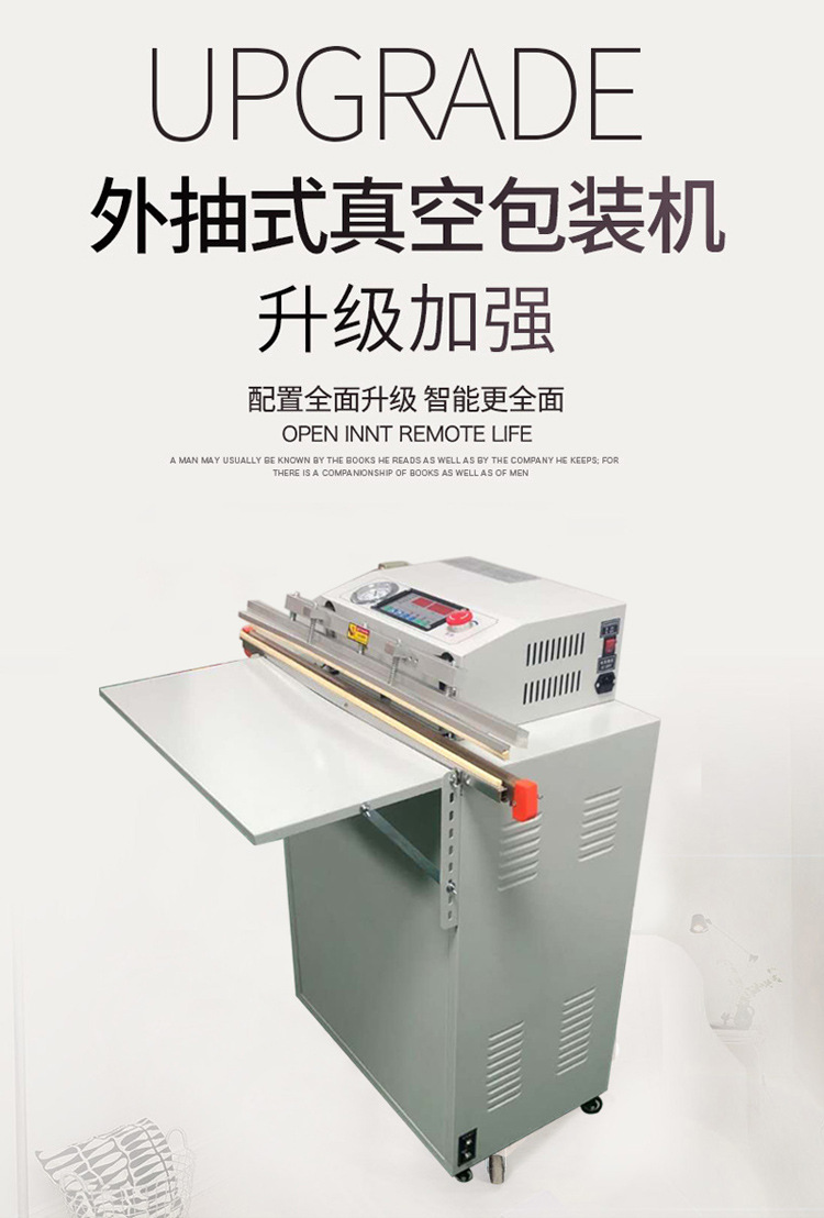 外抽真空包裝機通過抽氣嘴放入被包裝物的包裝袋內(nèi),?抽空空氣后完成封口,?實現(xiàn)了抽真空包裝的全自動化。?這種機器采用了國際先進的控制技術(shù),?具有自動定型包裝袋、?抽真空等功能,?從而使產(chǎn)品具有外觀美觀、?保鮮、?防變質(zhì)和延長儲存時間等特點。?外抽式真空機特別適用于食品、?藥物、?土特產(chǎn)、?電子元件、?服裝等進行真空、?封口包裝,?不受包裝物大小及體積的限制,?任意進行真空包裝。?其適用范圍廣泛,?經(jīng)濟效益高,?使用方便,?能夠有效地防止物料的迅速氧化和抑制好氧性細(xì)菌的繁殖所引起的物料腐敗和變質(zhì)。?