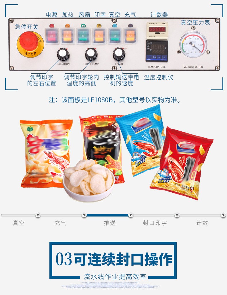 綜上所述,連續(xù)式真空封口機(jī)以其高效、穩(wěn)定和自動(dòng)化的特點(diǎn),為企業(yè)的產(chǎn)品包裝提供了高效、可靠的解決的方案