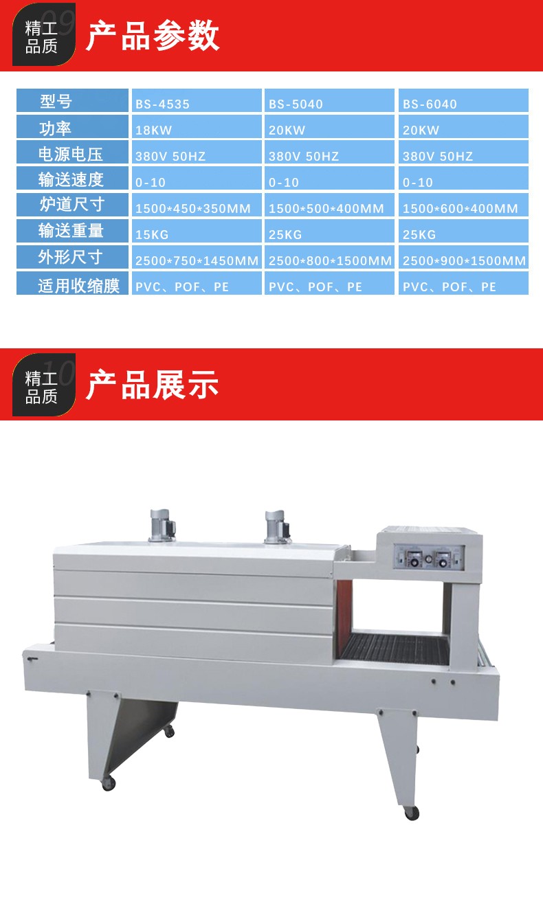 包裝質(zhì)量高:PE 熱收縮包裝機(jī)能夠使 PE 薄膜緊密地貼合產(chǎn)品,包裝后的產(chǎn)品外觀整潔、美觀,沒有褶皺。由于 PE 薄膜本身具有良好的柔韌性和透明度,包裝后的產(chǎn)品可以清晰地展示其形狀和外觀,同時(shí)也能有效地防止灰塵、水分等進(jìn)入產(chǎn)品,起到很好的保護(hù)作用。