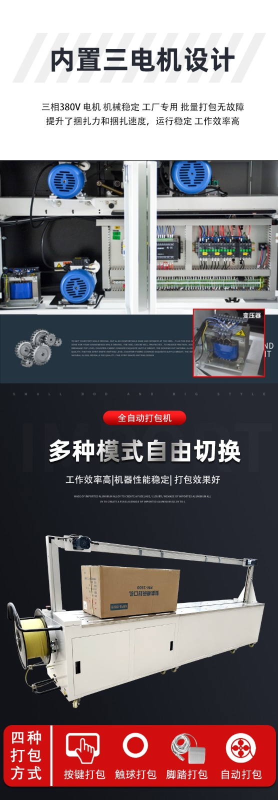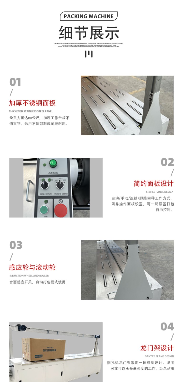 • 能夠精確控制打包帶的使用長度,避免了人工打包時可能出現(xiàn)的打包帶浪費現(xiàn)象,節(jié)約了包裝材料成本。