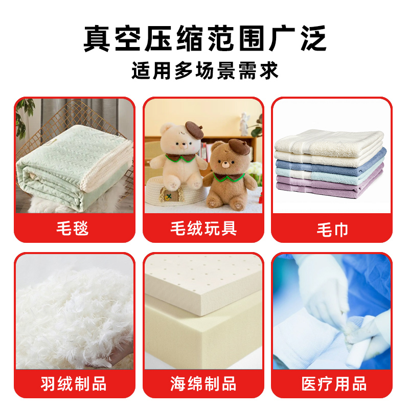 • 家居用品:用于羽絨被、棉被、枕頭、毛絨玩具等蓬松物品的收納包裝,可大大節(jié)省存儲空間,使家居環(huán)境更加整潔有序。