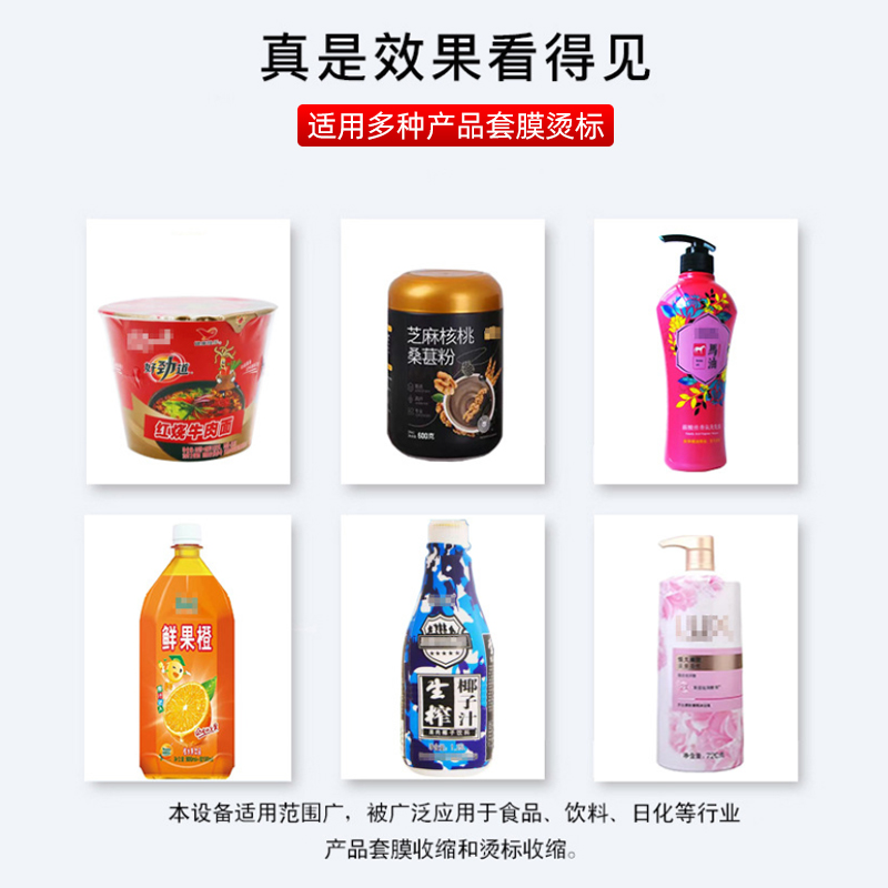 - 日化行業(yè):針對(duì)洗發(fā)水、沐浴露等異形瓶身,實(shí)現(xiàn)薄膜緊密包裹,防止運(yùn)輸中瓶身磨損,同時(shí)起到防塵、防潮作用。