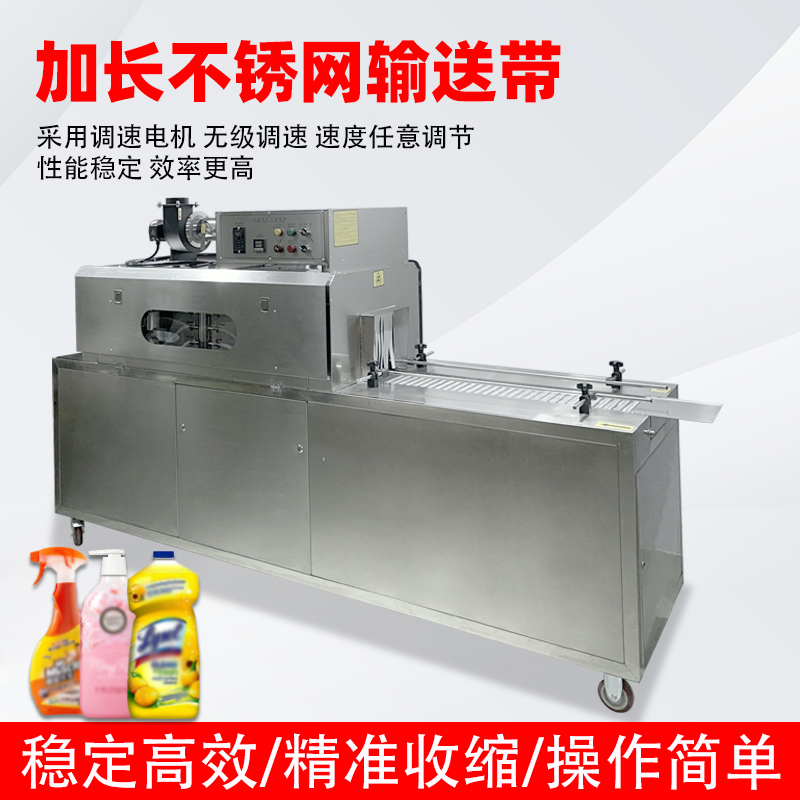- 前期準(zhǔn)備與輸送:先人工或自動(dòng)化設(shè)備將套好收縮膜(如 PVC、PET 膜)的產(chǎn)品放置在輸送帶上,輸送帶通過(guò)無(wú)級(jí)調(diào)速系統(tǒng)啟動(dòng),將產(chǎn)品勻速送入收縮通道。