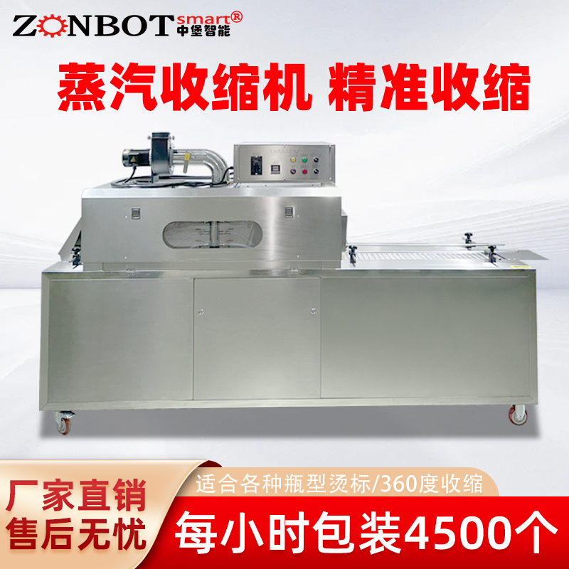 蒸汽的恒溫(通常溫度可控范圍 50-120℃)和擴(kuò)散均勻性,能避免傳統(tǒng)熱風(fēng)加熱導(dǎo)致的 “薄膜起皺、局部破裂” 問(wèn)題,即使是異形產(chǎn)品(如不規(guī)則五金件、弧形瓶身),也能實(shí)現(xiàn)平整、無(wú)氣泡的收縮效果。 - 生產(chǎn)效率高:適配大規(guī)模量產(chǎn)需求