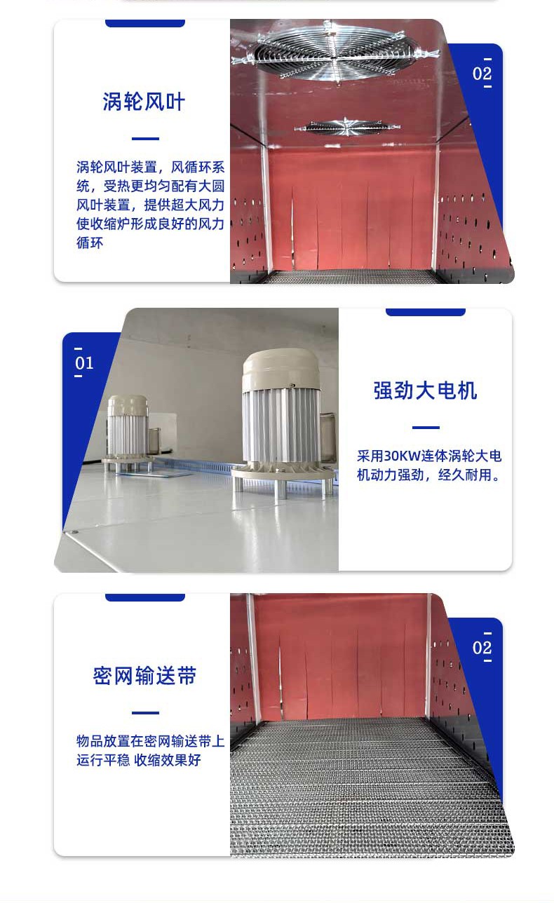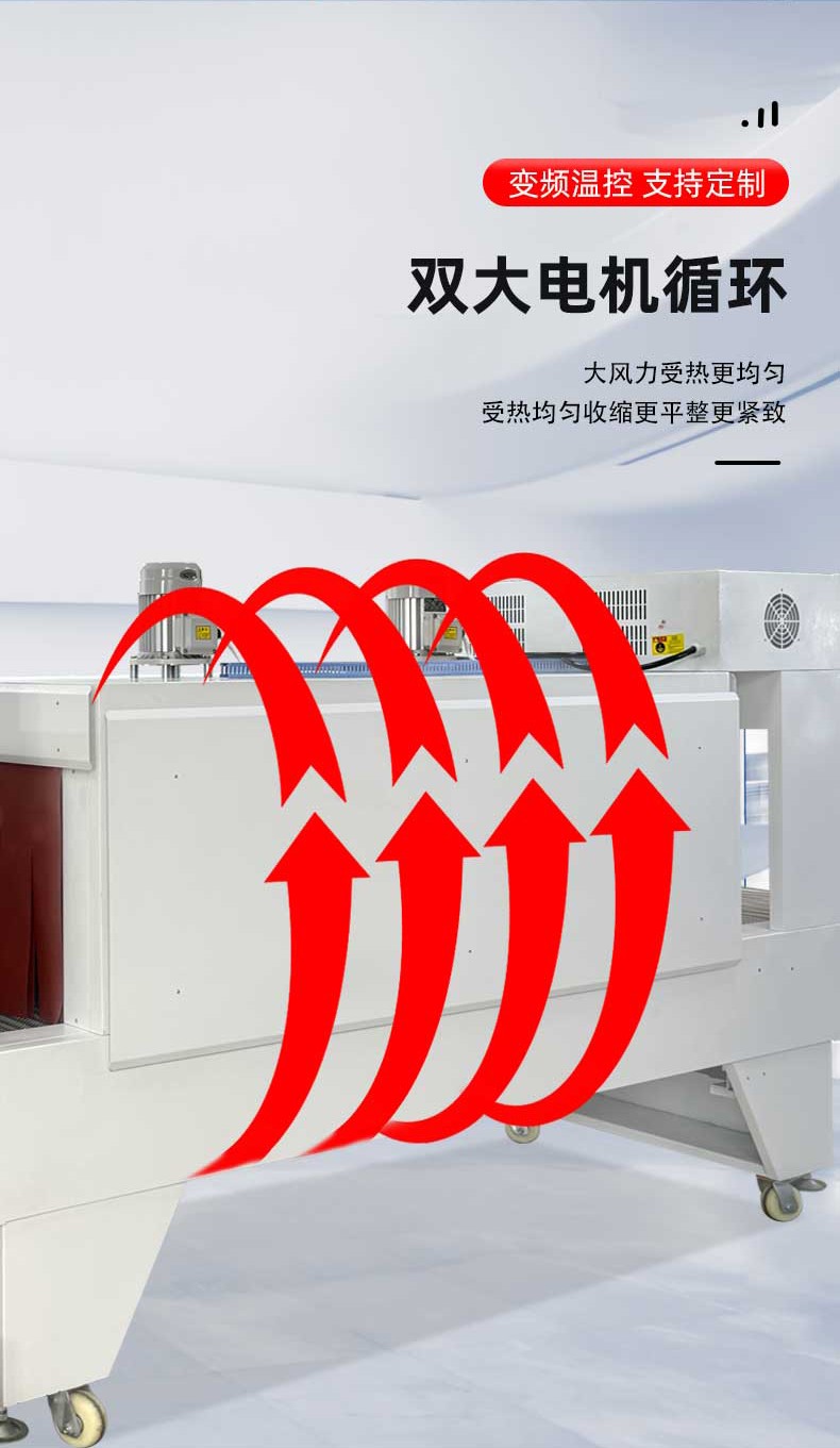 • 熱收縮定型:封切后的產(chǎn)品進入熱收縮區(qū),這里有高溫熱風循環(huán)系統(tǒng),使膜材均勻收縮,緊密貼合產(chǎn)品輪廓。比如有的設(shè)備采用螺旋風道設(shè)計,能有效提升收縮效率。