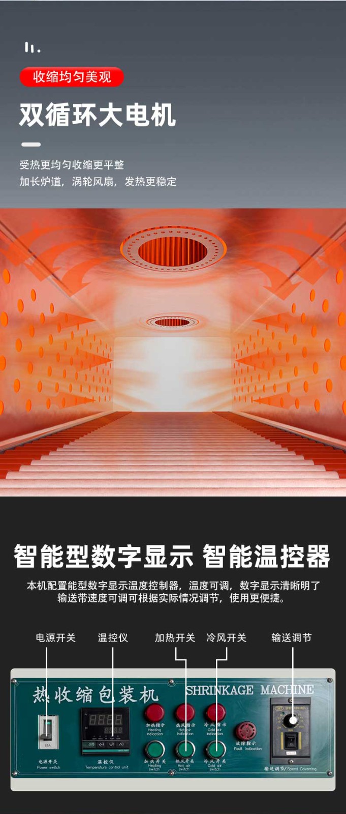 • 適用范圍廣:可適用于各種形狀和尺寸的產(chǎn)品包裝,如瓶罐類、盒裝類、桶裝類等,同時也能適應不同材質(zhì)的熱收縮膜,如 PE、POF、PVC 等6。