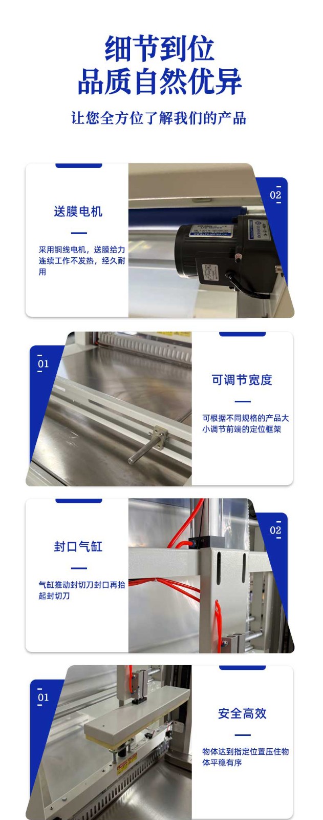 • 包裝效果好:通過精確的送膜和封切控制,以及均勻的熱收縮過程,包裝膜可以緊密貼合產(chǎn)品,形成美觀、牢固的袖口式包裝,提升產(chǎn)品的外觀品質(zhì)和市場競爭力6。