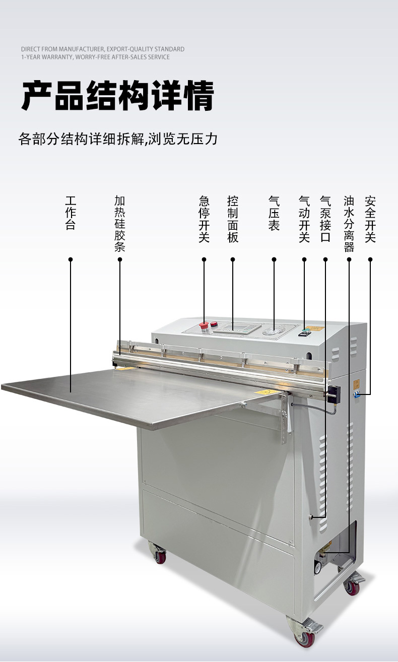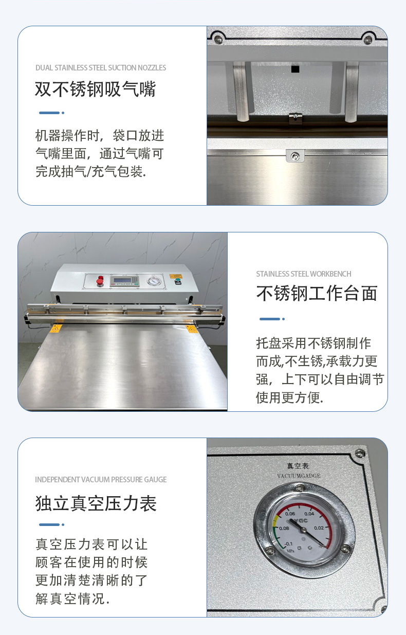 - 操作門檻低:無(wú)需頻繁調(diào)整腔體大小,只需定位袋口即可啟動(dòng),部分機(jī)型配備腳踏開(kāi)關(guān),單人即可高效操作。
