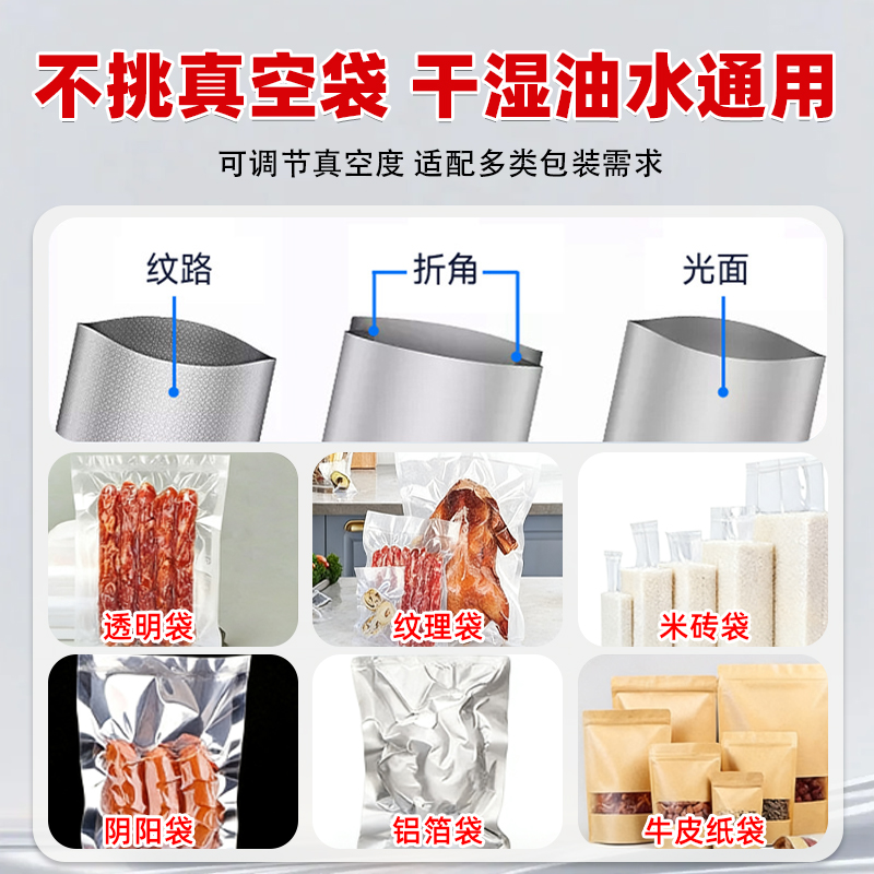 操作上搭載微電腦控制系統(tǒng),一鍵設(shè)定真空時(shí)間、封口時(shí)間,無(wú)需專業(yè)培訓(xùn)即可上手,降低人工成本。除了帶液食品,還可兼容堅(jiān)果、干貨、五金電子元件等固體產(chǎn)品包裝,一機(jī)多用適配多品類生產(chǎn)需求。