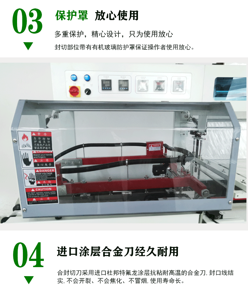 全自動(dòng)L型封切機(jī)采用環(huán)保材料制成,無污染、低噪音,既能降低使用成本,又能滿足綠色環(huán)保要求。讓您的企業(yè)形象更上一層樓!