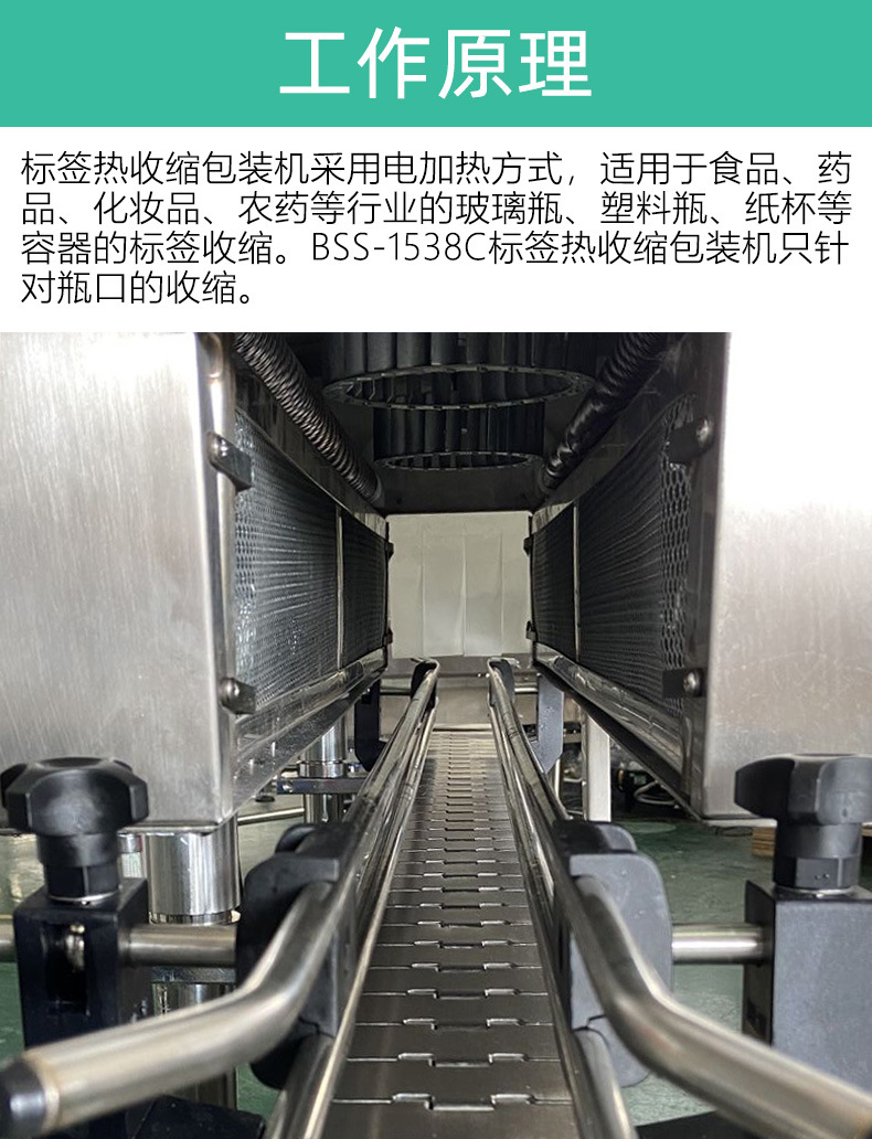 利用蒸汽獨(dú)有的恒溫而且溫度擴(kuò)散均勻的特性來(lái)工作,以達(dá)到普通電熱紅外加熱收縮機(jī)不可比擬的效果。設(shè)備采用加熱器加熱水而產(chǎn)生蒸汽,不需要另外配備蒸汽鍋爐。主機(jī)有主副2個(gè)加熱器,可以根據(jù)不同的生產(chǎn)速度來(lái)調(diào)節(jié)設(shè)備功率的大小,輸送帶采用無(wú)級(jí)調(diào)速,輸送速度可以任意調(diào)節(jié)。廣泛應(yīng)用于大桶或小瓶裝礦泉水、純凈水;汽水和茶飲料等食品飲料行業(yè),以及化妝品、洗發(fā)水和五金電子等需要收縮膜包裝的場(chǎng)合使用。
